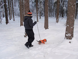 Käytiin ulkoilemassakin muutaman kerran kovassa pakkasessa, jossa Väinö ei meinannut viihtyä.